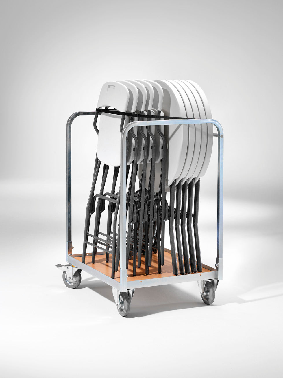 Praktisk och rejäl vagn som passar till transport och förvaring av våra fällbara ståbord och raka bord. Rymmer upp till 15-18 styck hopfällbara Ståbord eller raka bord med bredd 70-80cm.