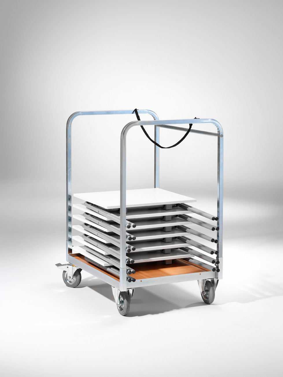 Praktisk och rejäl vagn som passar till transport och förvaring av våra Examen bord. Rymmer upp till 11 styck hopfällbara Examen bord.